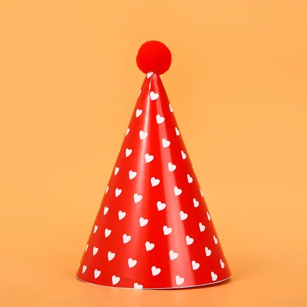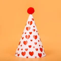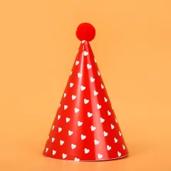 Pack of 10 Hearts party hats are festive accessory perfect for adding a touch of love and celebration to any party or event. These hats are typically made from durable materials such as paper or cardboard and are adorned with colorful and eye-catching heart patterns.