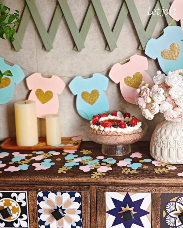 This baby shower banner is perfect for the table cake, adds more fresh colors to a gender reveal, Baby shower, or Birthday Party decor.