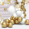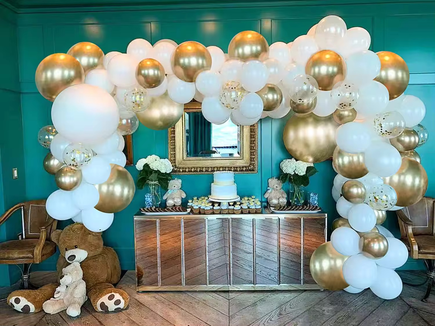 White and gold remains the ultimate combination for party decor. The clean, modern look of white balloons paired with the luxurious shine of gold complements virtually any celebration theme, venue style, or color palette. Whether you want a minimalist look or a glamorous display, this balloon garland kit fits your need. It’s perfect for milestone birthdays, gender-neutral baby showers, chic weddings, engagement parties, retirement celebrations, or any event where style matters.