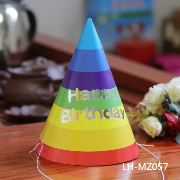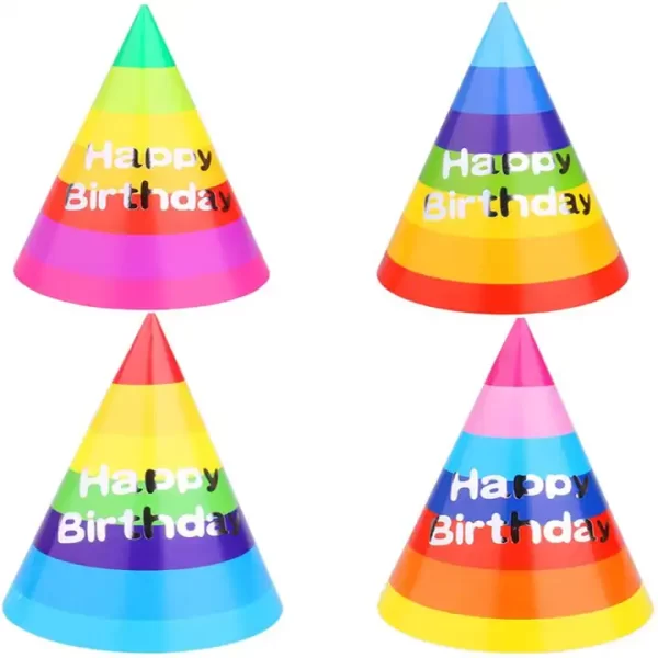 These Birthday Rainbow Party Hats will be perfect for a bright and colorful Birthday. These hats can easily be combined with other party decorations to make your party complete.