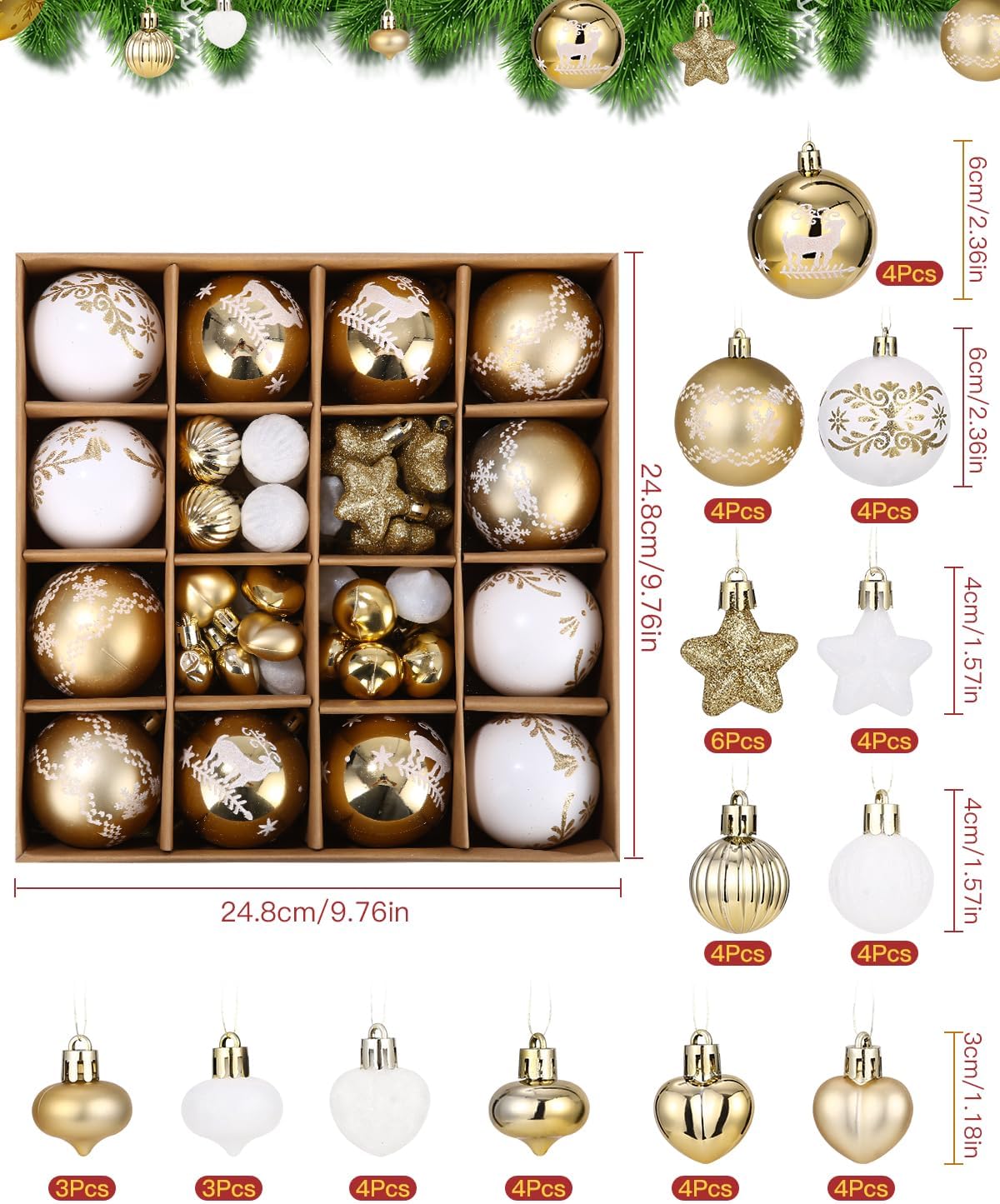 The classic colour scheme adds to the Christmas atmosphere and the different styles and colours of the Christmas balls add to the festive fun.