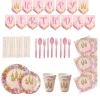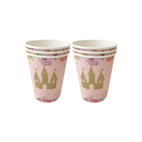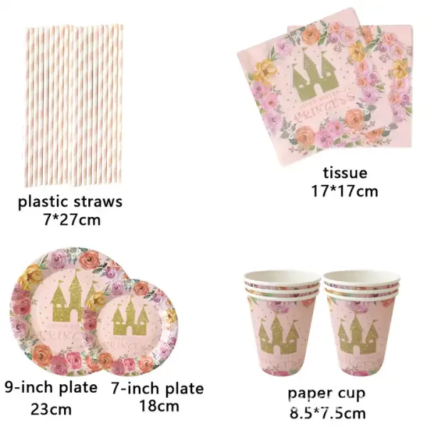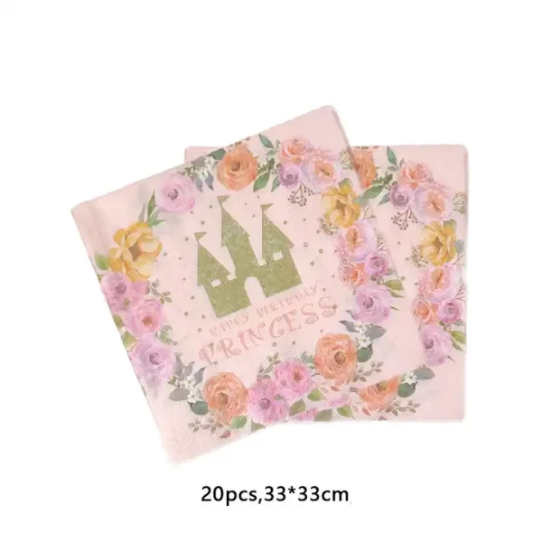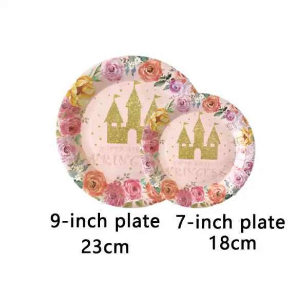 The princess paper plates feature a colorful floral ring in the border, in the center with a castle and ‘Happy Birthday Princess’ text.